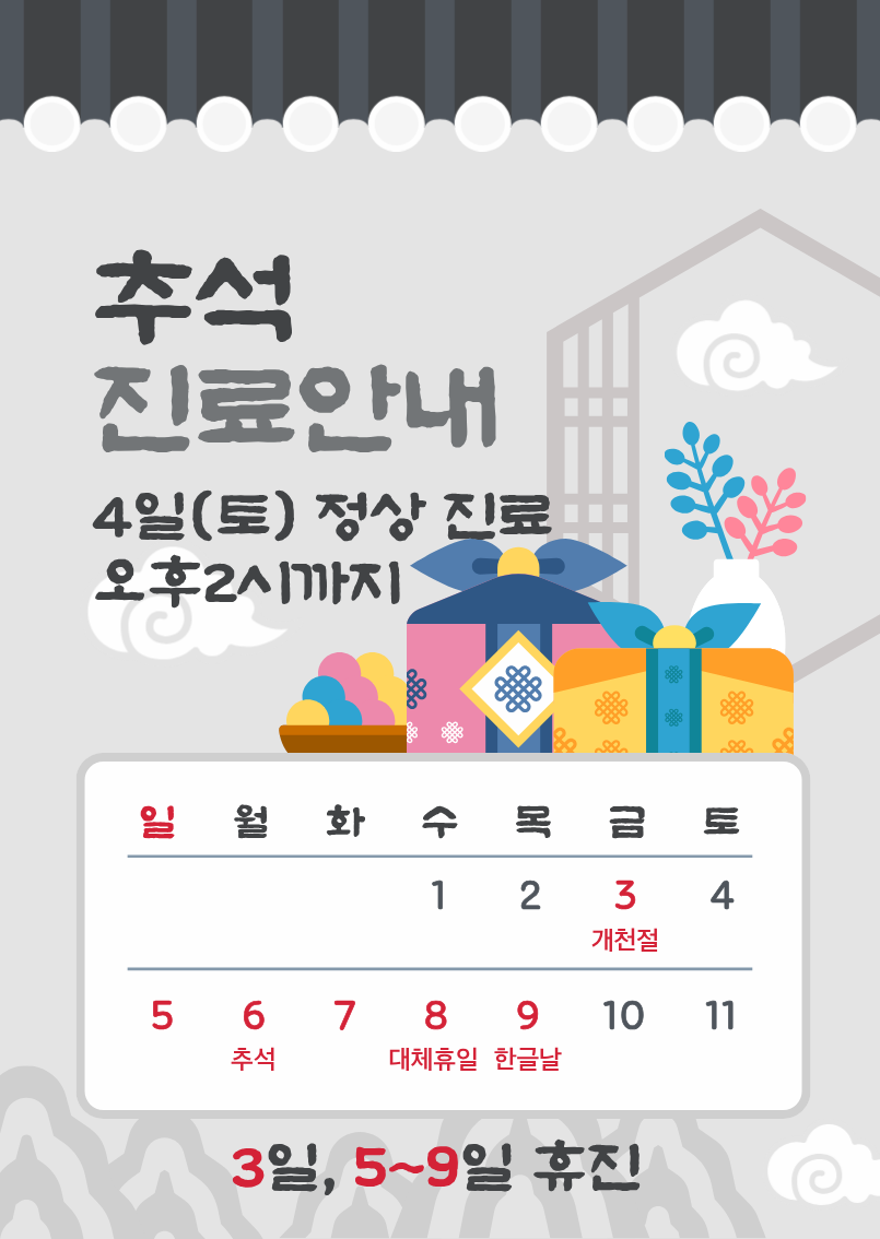 * 토요일은 점심시간 없이 진료